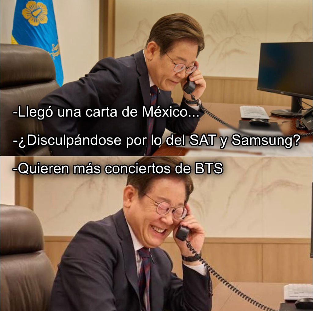 Para qué enfocarse en el T-MEC o en las amenazas de una intervención gringa cuando la política exterior mejor se puede centrar en pedirle al gobierno de Corea del Sur más conciertos de BTS en México? En Seúl ya confirmaron haber recibido la carta que la intern de Palacio les mandó para pedir de rodillas que los B(oys) T(hat) S(mell) se queden más tiempo en la Sedemequis o busquen otras formas de complacer a los millones de fans que tienen en nuestro mugroso hermoso país. La banda con el fandom más inexplicablemente virgen de la historia ya está analizando la propuesta.