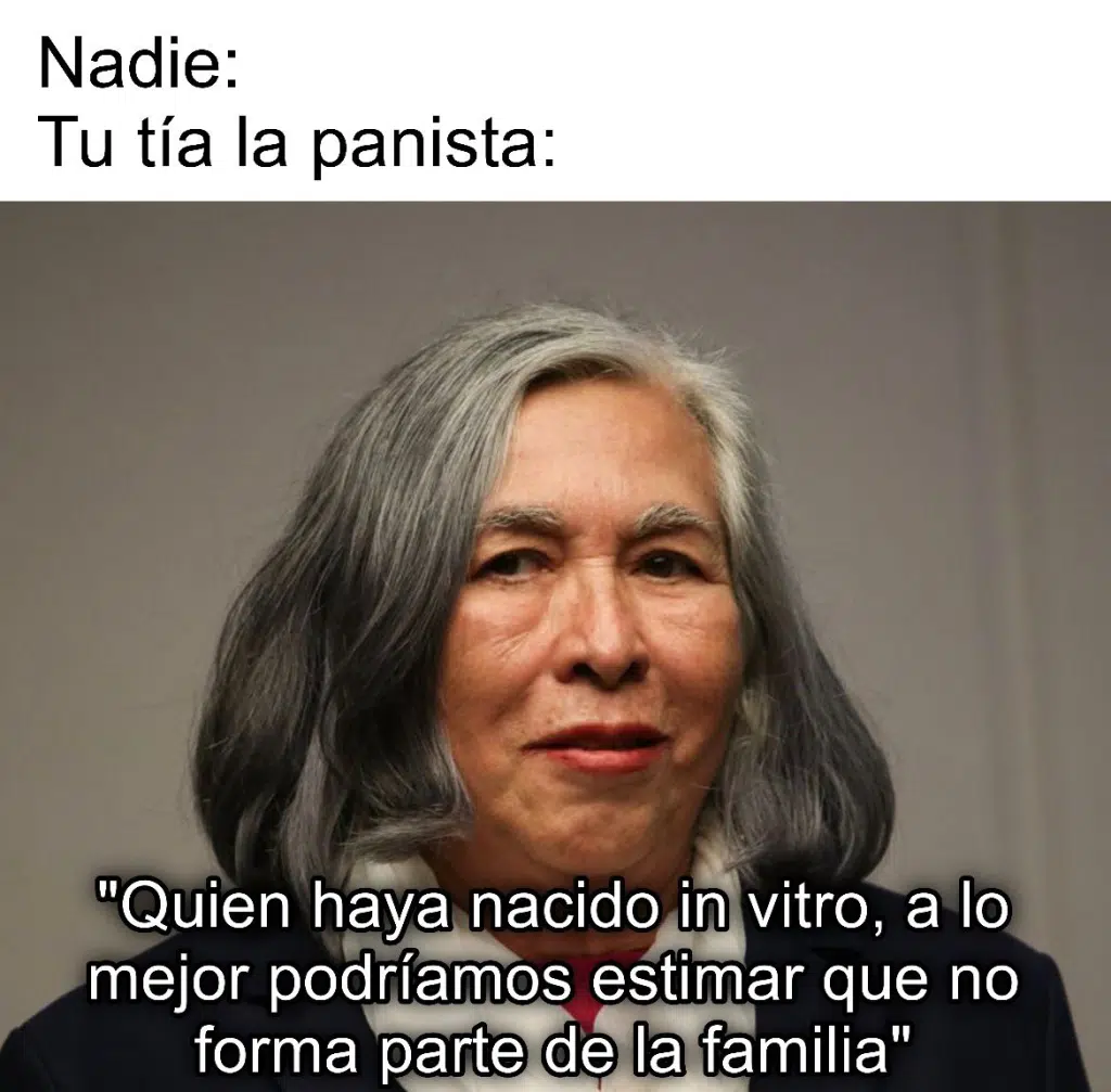 Acá no tenemos nada contra la silver economy, al contrario. Lo que nos conflictúa es que lleguen a cargos de alto poder viejitas cuya única credencial es haber sido el crush eterno del Viejito de Palenque. Y así estamos con parte de las ministras del Bienestar, como María Estela Ríos, que fue la abogada personal del anciano y hoy es ministra de la Suprema Corte. El tema acá es que la señora se vio al espejo, creyó que era la copia barata del Loco Valdez y empezó a soltar una sarta de ocurrencias al más puro estilo de la tía Cuquis de la Peza en cena de navidad con 3 rompopes encima, diciendo que las personas que nacían tras una inseminación in vitro no eran parte de la familia tradicional mexicana. Ojalá nadie le pregunte a esta señora qué piensa de que Santi y Mariano puedan adoptar…