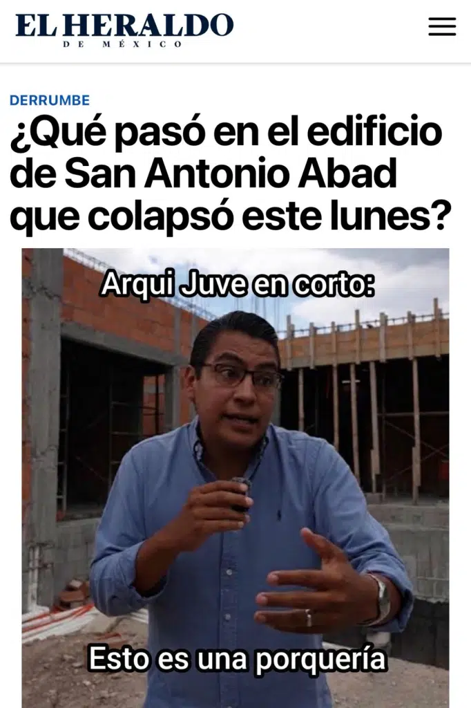 Primero vimos el derrumbe en la Ibero, seguido del derrumbe en la Universidad Veracruzana y ahora tremendo sustote que se metieron en San Antonio Abad (eso es una calle en la Cuauhtemoc, Santi) cuando se cayó un edificio que estaba en proceso de demolición. Varios hasta pensamos que el Trumpetas ya nos había empezado a bombardear. El terremoto del 2017 dejó j0d1d0s en malas condiciones muchos inmuebles en la Cedemex y casi 10 años después, a alguna mente maestra se le ocurrió que tal vez era buena idea demoler este. Obvio la estructura ya no aguantaba más y en cuanto empezaron a meterle mano, se vino pa’abajo atrapando a por lo menos 4 trabajadores bajo el concreto. Hasta este lunes en la noche, ya habían rescatado a una persona muerta, otro más estaba en el hospital y dos más seguían bajo los escombros.