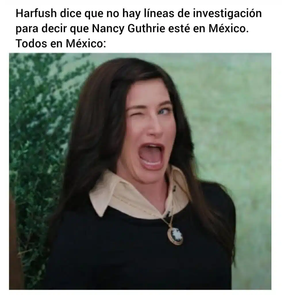 Después de 20 días de que la dulce abuelita, Nancy Guthrie, desapareció de la faz de la tierra… y mucha especulación de medios gringos como TMZ de que la habían secuestrado y mandado de México, por fin el Robocop de Ahuehuetzingo salió a decir que no tienen una línea de investigación con el FBI que tenga relación. Hay videos que muestran a un hombre con una malla en la cara y capucha, pero, los poresojoven gringos y la Fiscalía of the north no han confirmado nada, más que podría ser un ataque directo. Nancy es mamá de una de las presentadoras más famosas de la cadena NBC, Savannah Guthrie. A ver si el gobierno de Shamebee no sale a decir bueeeeno, siempre sí hay investigación…