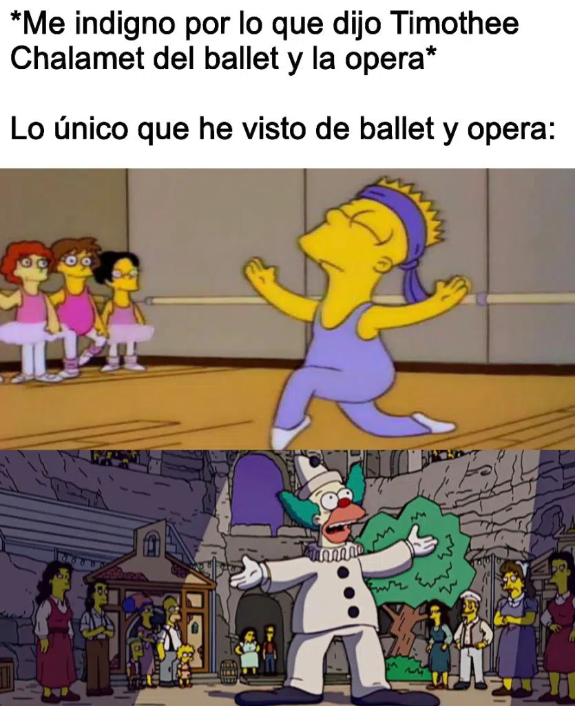 Vaya madriza que la gente del internet le está acomodando al Jitomate Saladet, después de que el wey habló de más en un podcast con Matthew McConaughey para Variety. Timotheé Chalamet básicamente dijo que no habría manera humana de que trabajara en el mundo del ballet y la ópera pues es un mundo que ya a “nadie le importa”. Santi, que ha vivido el martirio de levantarse un sábado temprano para ir al festival de ballet de su hermanita, coincide completamente con la apreciación del Marty Supreme, pero al parecer estas palabras hirieron muchísimo la susceptibilidad del mundo del ballet y la opera, que ya lo están funando en do sostenido. El New York City Ballet, la Met Opera, el Royal Ballet, la Opera de Roma y básicamente todas las compañías que ves en la Scalla de Milán cuando necesitas una Power Nap en medio del eurotrip salieron a insultar de arriba a abajo al buen Timoteo, que al parecer ya es el Karlo Sofio Gascón de los Oscares para este año.
