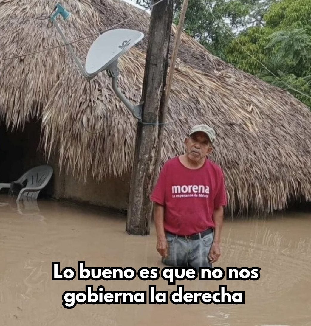 FONDEAD (2): La Doctora entonces canceló sus planes del fin (cosa que nunca vimos al Altísimo hacer) y se lanzó a la zona cero. Cómo le fue? Pues algo así como a Peña en la Ibero en 2012, pero con más agua, menos ladrillos y el decil socioeconómico diametralmente opuesto. En resumen le mentaron la madre a Clau tantas veces por la situación, que la única respuesta que le pareció prudente fue decirles que se callaran alv (neta neta). Le pedimos a la gente que porfa la entienda, porque primero ha de ser duro darse cuenta que las mañaneras y las encuestas de popularidad son un invento… y sobre todo, imagínense lo que es tener que sacar una empresa a flote después de que su jefe se pasó 6 años robandose hasta el papel de baño (y encima lo tiene que defender diario).
