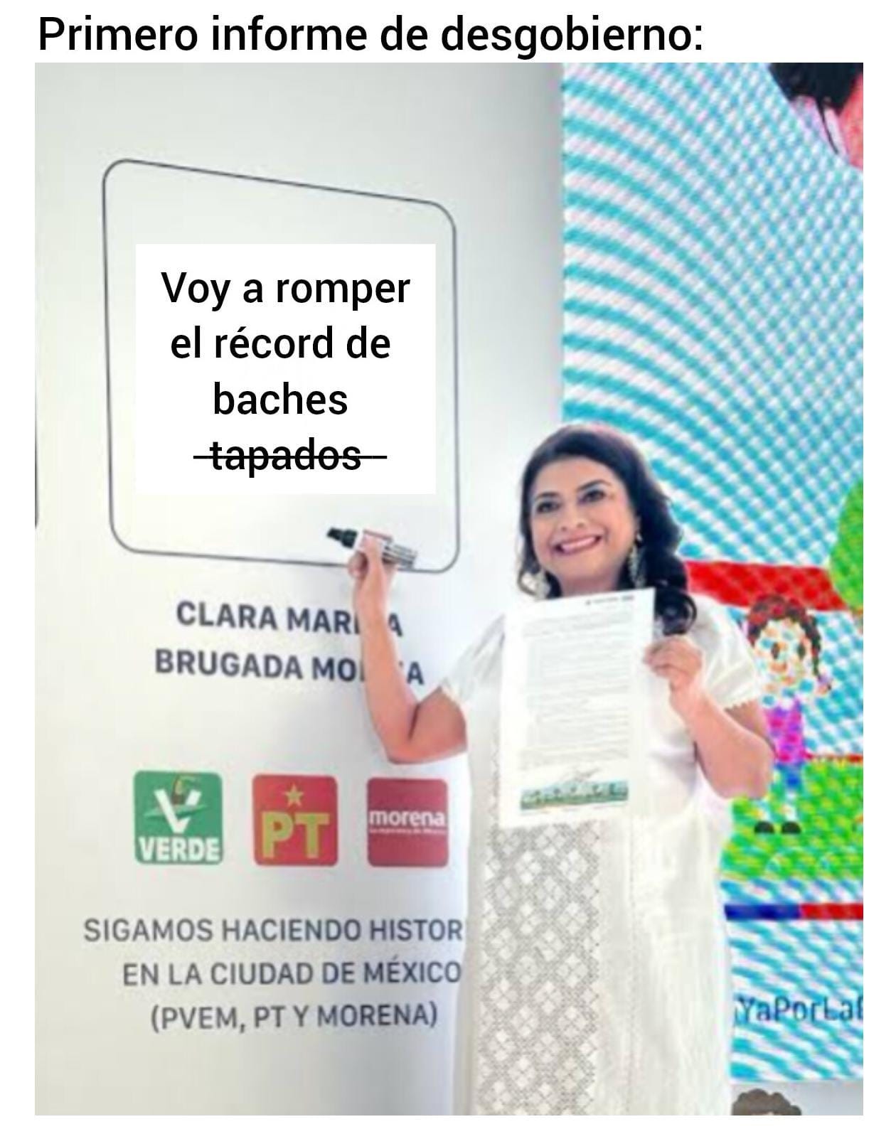 Muy Pronto: Para no robarle titularidad a Clau, mi Clariwis Brugada tuvo que posponer su festejación hasta ayer. Y este domingo, Brudraga dio su primer informe de (lo que sea que haya hecho estos doce meses menos encabezar un) gobierno. Dijo muchas tonterías, pero con la que nos quedamos es que prometió que “muy pronto” la CDMX estará libre de baches. No somos expertos en el tema, pero creemos que la temporalidad de ese “muy pronto” es más relativa que el “ahorita” que el intern nos aplica cada que le preguntamos a qué hora manda las noticias.