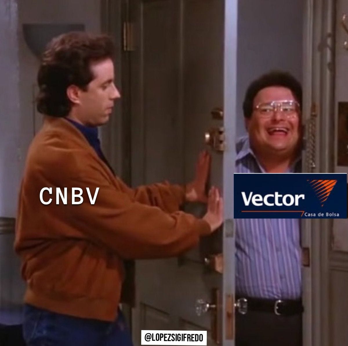 ALVector: Solamente les tomó 175 días hacer su chamba, pero finalmente ayer la CNBV le quitó todos los permisos de operación a Vector Casa de Bolsa por básicamente ser la Tintorería Bosques de todos los sombrerudos. Aunque en realidad no fueron las autoridades tomando la decisión (pa no enojar al patrón chiapaneco), sino que fue la propia startup de Ponchito Romo la que solicitó la auto-eutanasia ante el regulador mexa antes de meterse en más pedos. Si tenías tu lana ahí (neta qué pedo contigo???) márcale al bff de AMLO, Ponchito Romo… aunque el wey ya tuvo tiempo suficiente para armarse una vida nueva, con cara nueva vendiendo smoothies en alguna playa de Seychelles sin miedo a Ernestinga Godoy.
