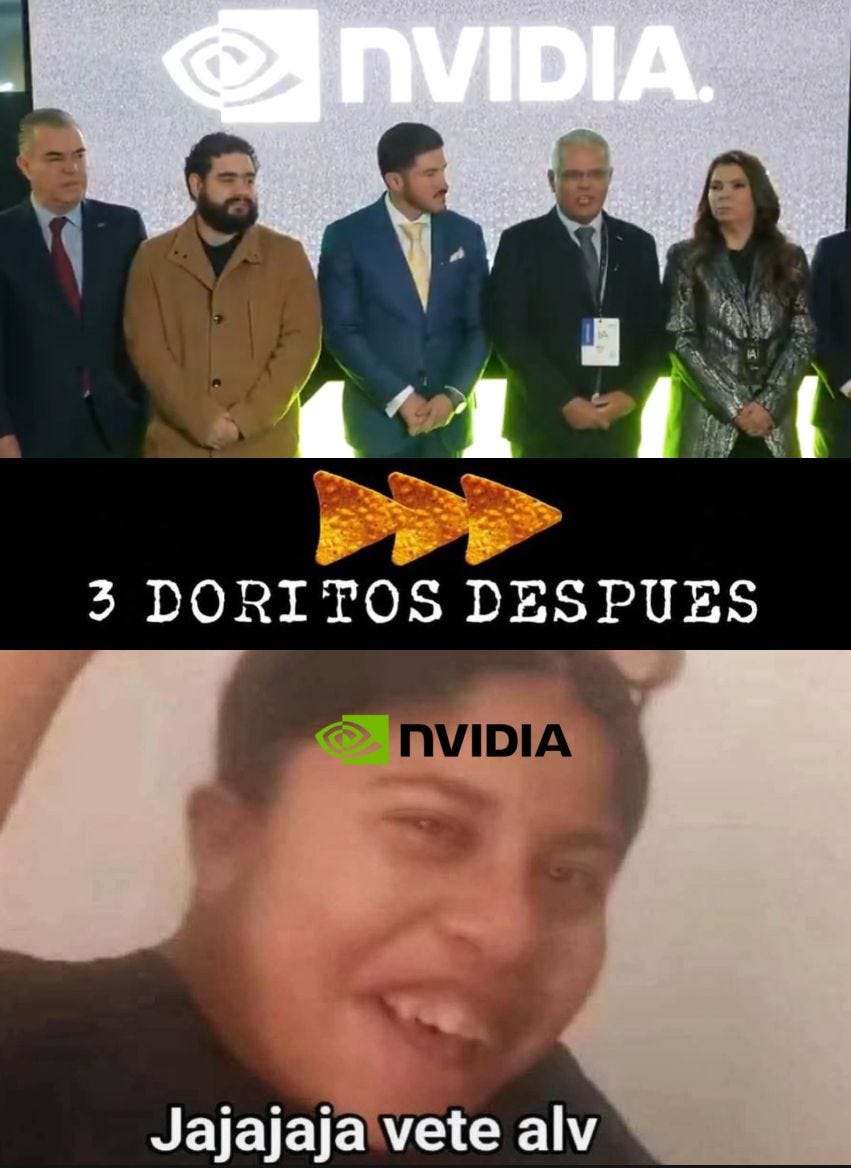 Nada nuevo. El gobernador de Monterrey (¿neta hay algo más en Nuevo León?) hizo una de las suyas. Este miércoles, en un evento medio equis en la Ciudad de México, salió a presumir que Nvidia había hecho una inversión de mil millones de Georges Washingtons para desarrollar un AI center en el estado, pero la empresa lo desmintió en chinga. Es más, dijo que ni siquiera tienen planes financieros ahí, pero el gobierno de Super Sam y sus cuates atendió la crisis como ya nos tiene acostumbrados… dlv. Dijo que otra compañía (una tal Cipre, que en su casa la conocen) es la que va a poner la lana, pero que sí van a usar tech de Nvidia. Algo similar pasó con la disque planta de Tesla de su disque cuate Elon Musk. La estuvieron presumiendo tanto que la salaron, y ahora namás se quedó en renders. (Proceso)