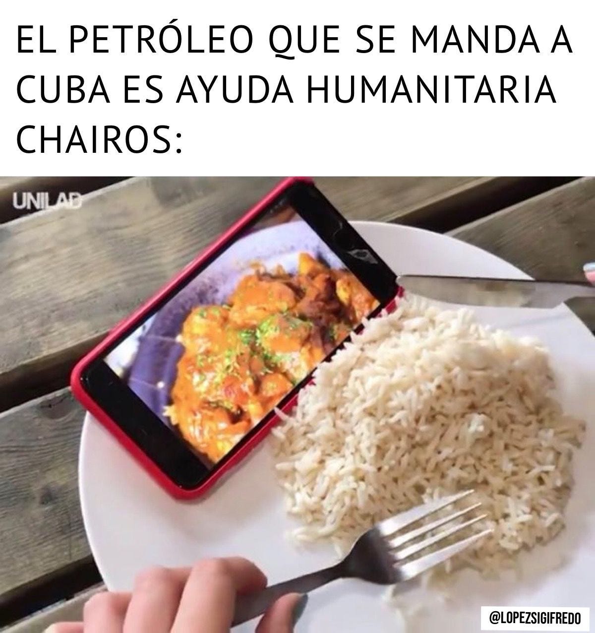 Pero ya saben que pa’ pendejadas en México nos pintamos solos. No había Trump acabado de darle enter a su twit, cuando un buque tamaño caguama con ochenta y seis pinches mil barriles (sí 86,000) zarpaba de nuestras costas en dirección de La Habana. Cuestionada en una de sus giras populacheras por el país, La Señora Shameclown aseguró que todo lo hacen por “ayuda humanitaria”. Alguien plis explíquele a la Doctora de Berkley que a lo único humano que ayuda ese petróleo es a Diaz Canel que sigue llenando su cuenta bancaria en Suiza vendiendo el crudo.