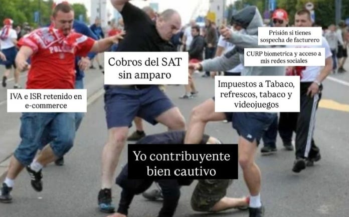 A ver queridos, no se confundan. La serie interminable de madrazos que vimos pasar los últimos 10 días son una sola cosa: una Reforma Fiscal maquillada y por partes. Porqué digo que es una reforma y no una simple “subidita”? No solo subieron los impuestos directamente a varios productos (eso es obvio), lo realmente importante son los cambios estructurales al sistema de cobros y sobre todo a las penas por no pagar. La cantidad de varo que van a desbloquear estos cuates es impresionante (esperemos se use para algo más que solo seguir comprando votos). Como viene la cosa entonces? Les cuento…