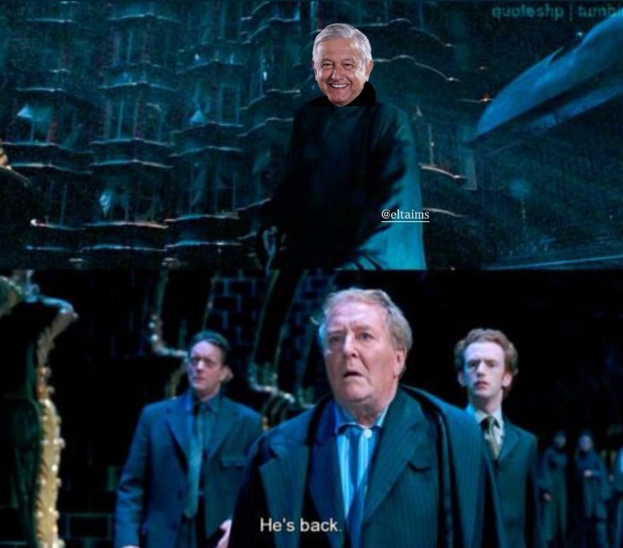 Guess Who’s Back: Señoras y señores, nuestros miedos más profundos se cumplieron: He Who Must Not Be Named is back. En lo que debe ser de por mucho el récord del retiro más corto de un presidente en la historia de México, ayer AMLO hizo su reaparición a la vida pública con un video-podcast de 50 minutotes desde Palenque. Se supone que lo hizo para presentar su nuevo libro, pero en realidad fue una advertencia clara anunciando que va a regresar a los reflectores si el Tío Richie sigue siendo un pain in the ass del gobierno, si siguen las marchas de la GenZ queriendo dar un “golpe de Estado” o si a Trump se le pasa la manita con sus socios y amigos como en Venezuela. Imagínense el tamaño de desmadre que tiene la Doctora que se tuvo que recurrir a este “Rompase en Caso de Emergencia” (y no precisamente activado