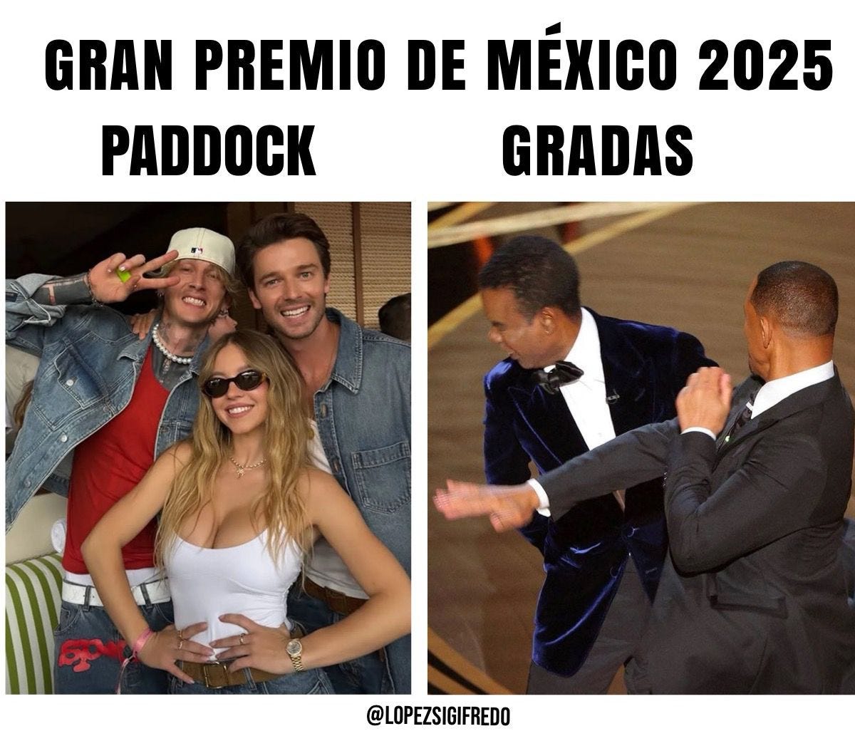 Otro Show: Gracias a RedBull, el sábado el intern estuvo por el garage de Liam Lawson y sinceramente creemos que el wey le contagió la mala suerte a todo el equipo. No solo porque el wey tuvo que abandonar la carrera porque a su coche le dio amsiedad, sino porque el casi acaba en el Juez Cívico de Iztacalco por casi matar a dos cristianos. Después de los madrazos de la largada, dos comisarios estaban recogiendo todo el debris en la pista, cuando intentaron cruzar la calle cual juguetes de Toy Story, pero ahí venía a toda velocidad Lawson, quien casi se los lleva de corbata. Por suerte no pasó nada y la FIA ya dijo que está investigando qué ocurrió… al parecer lo de abrir carpetas de investigación es contagioso y medio endémico de nuestro país.