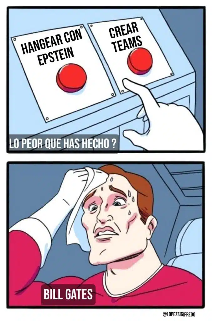 Bill Gates salió a pedir perdón por haberse llevado tan bien con Epstein, el tipo que… bueno, ya ni necesita presentación. Según el fundador de Microsoft, fue “un gran error” haberse reunido en varias (neta, varias) ocasiones con él. Eso sí, a Don Bill le dio penita reconocerlo públicamente, así que lo hizo en una reunión privada con los Interns de su fundación. Todo esto a partir de que la FGR gringa empezara a revelar documentos de los archivos Epstein y, pues, Bill aparece en varias fotos medio sospe. Pero bueno, según él no hizo nada malo, nada que no fuera “tener un par de aventuras con mujeres rusas” que, asegura, no tuvieron nada que ver con los delitos de Jeffrey.